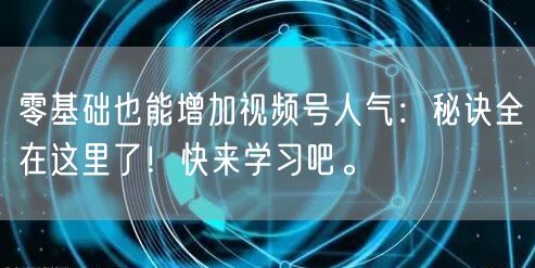 零基础也能增加视频号人气:秘诀全在这里了!快来学习吧。